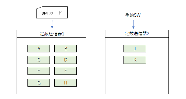 | pr プリンター 8つのアキュムレータ1、2、15、16、17、18、19、20に、プリンター(IBMのカードパンチ)が接続されている。 |