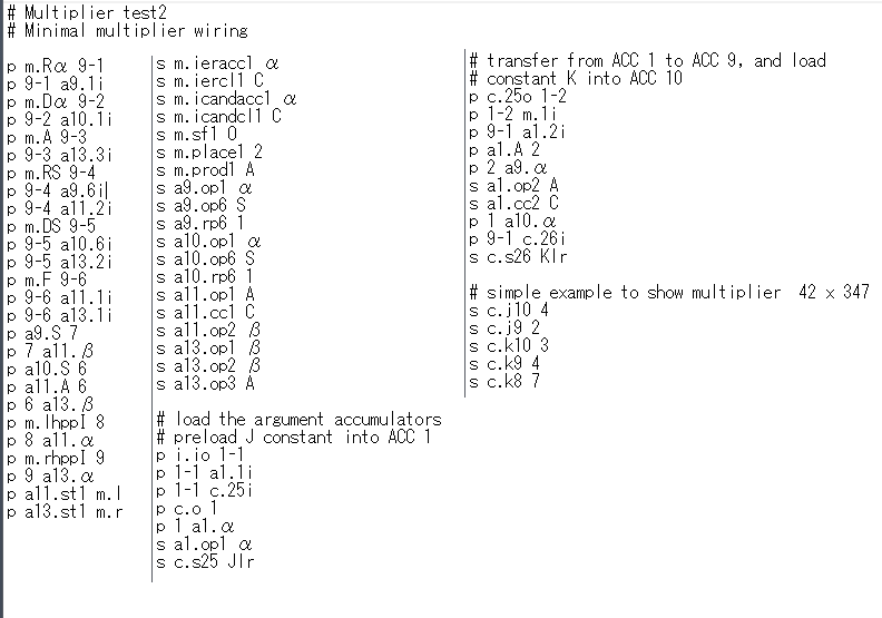 | pr プリンター 8つのアキュムレータ1、2、15、16、17、18、19、20は、プリンター(IBMのカードパンチ)に接続されている。 |