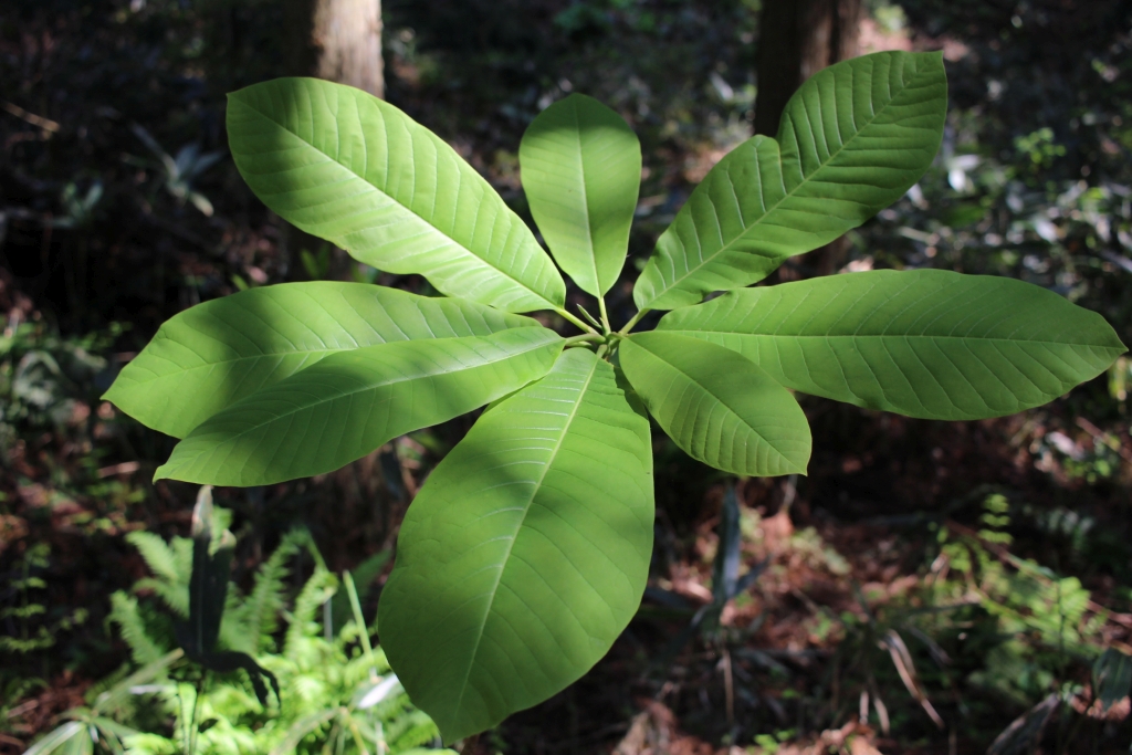 実家付近の山道にあるホオノキ 高木は、5〜6月頃花が咲きます。