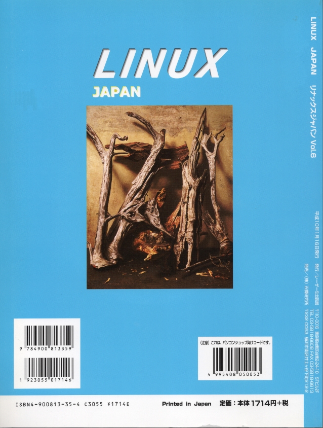 | 1996年 レーザー5出版局より、日本版のLINUXが出版されました。 Vol.1 〜 Vol.7迄の表紙デザインの「樹木」が印象的です。 表紙画家: 高松 秀和 「生命シリーズ」 各号には、付録にCD付いていました。 最初に使ったLinuxは、Slackwareでした。 その後、RedHatが大頭 ・・・ |