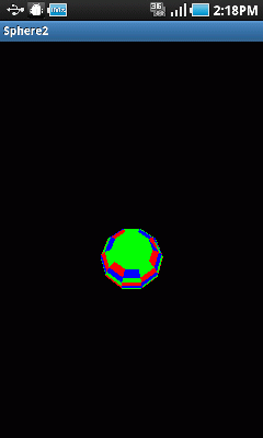 | void createSphere(int Radius, /* 半径 */ int segW, /* 分割 W */ int segH /* 分割 H */ ) { int gridU = segW; int gridV = segH; int gridU1 = gridU + 1; int gridV1 = gridV + 1; int incU = 360 / gridU; int incV = 2 * Radius / gridV; i nt cnt; // 頂点配列 float[] vertices = new float[(2 + (gridV1-2) * gridU) * 3]; cnt = 0; vertices[cnt++] = 0.0f; vertices[cnt++] = (float)-Radius; vertices[cnt++] = 0.0f; double d = Radius; double y, t, r; for( int iv=1; iv<(gridV1 - 1); ++ iv ) { y = iv * incV - d; r = Math.sqrt(d * d - y * y); for( int iu = 0; iu<gridU; ++ iu ) { t = iu * incU * Math.PI / 180; vertices[cnt++] = (float)(r * Math.cos(t)); vertices[cnt++] = (float)y; vertices[cnt++] = (float)(r * Math.sin(t)); } } vertices[cnt++] = 0.0f; vertices[cnt++] = (float)Radius; vertices[cnt++] = 0.0f; //............................................................... // インデックス配列 byte[] indices = new byte[((gridV-1) * gridU * 2) * 3]; cnt = 0; for( int iu = 0; iu < gridU; ++ iu ) { indices[cnt++] = 0; indices[cnt++] = (byte)((iu + 1) % gridU + 1); indices[cnt++] = (byte)(iu + 1); } for( int iv = 1; iv < gridV1 - 2; ++ iv ) { for( int iu = 0; iu < gridU; ++ iu ) { int m = (iv - 1) * gridU; //Triangle A indices[cnt++] = (byte)(iu + 1 + m); indices[cnt++] = (byte)((iu + 1) % gridU + 1 + m); indices[cnt++] = (byte)(iu + 1 + gridU + m); //Triangle B indices[cnt++] = (byte)((iu + 1) % gridU + 1 + gridU + m); indices[cnt++] = (byte)(iu + 1 + gridU + m); indices[cnt++] = (byte)((iu + 1) % gridU + 1 + m); } } int n = (2 + (gridV1-2) * gridU) - 1; for( int iu = n - gridU; iu < n; ++ iu ) { indices[cnt++] = (byte)iu; indices[cnt++] = (byte)(iu % gridU + n - gridU ); indices[cnt++] = (byte)n; } mSpIndicesNum = indices.length; //........................................................ // カラー配列 int[] colors = new int[(2 + (gridV1-2) * gridU) * 4]; cnt = 0; int iro = 0; for( int i=0; i<colors.length; i+=4 ) { switch (iro){ case 0: { colors[cnt++] = 1; colors[cnt++] = 0; colors[cnt++] = 0; break; } case 1: { colors[cnt++] = 0; colors[cnt++] = 1; colors[cnt++] = 0; break; } case 2: { colors[cnt++] = 0; colors[cnt++] = 0; colors[cnt++] = 1; break; } } colors[cnt++] = 1; iro++; if ( iro == 3) iro=0; } //.......................................................... mSpVertexBuffer = makeFloatBuffer(vertices); mSpIndexBuffer = makeByteBuffer(indices); mSpColorBuffer = makeIntBuffer(colors); } |