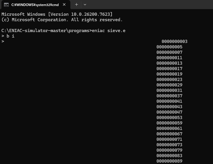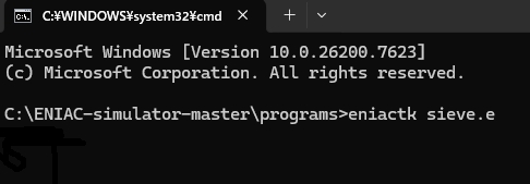 | BENIACグラフィカルシュミレータの実行 >eniactk sieve.e ![]() ![]() |