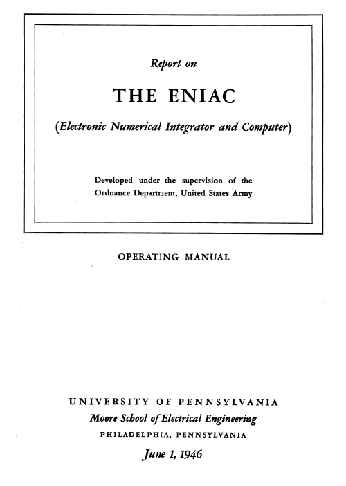 | Adele Goldstine の技術マニュアルにある、ENIACの基本操作より べき乗表を計算するプログラムのサンプル |