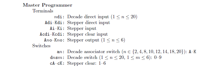 ENIACシュミレータの設定表記法 (抜粋 ) → https://github.com/blstuart/eniac-simulator ※DOCフォルダー内の ref.tex