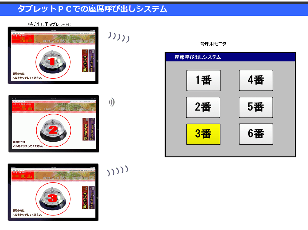 タブレットによる注文 ・・・ 注文のメニュー名を、日本語・英語・韓国に対応